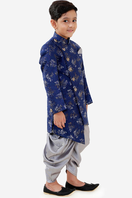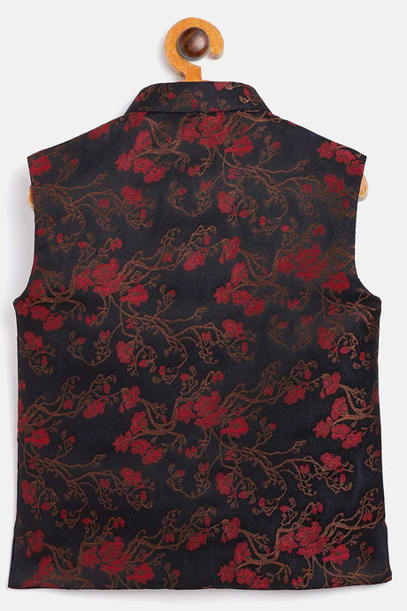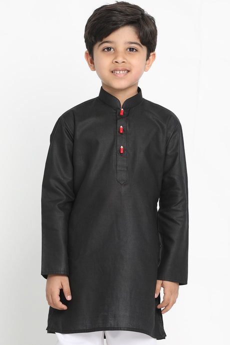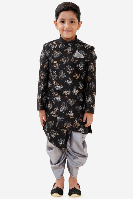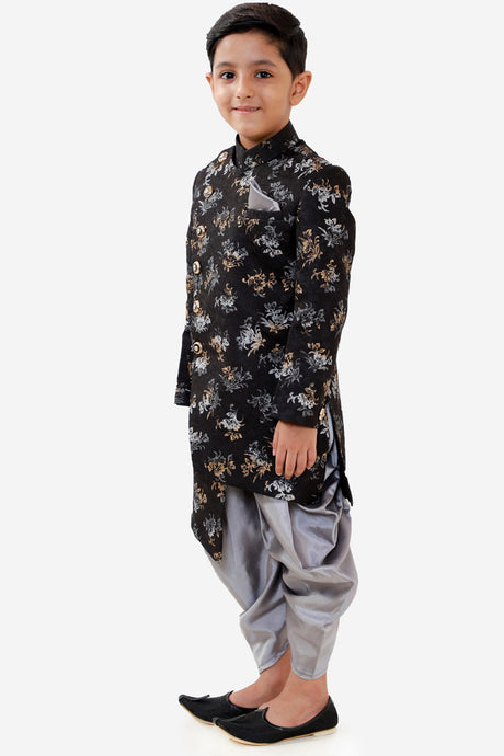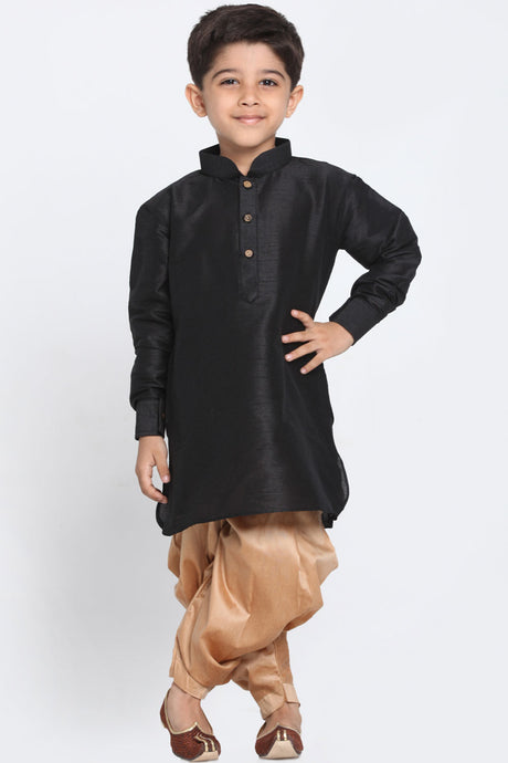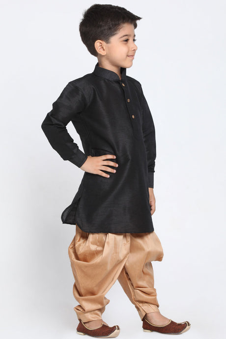 Boys Black Crepe Gold Pigment Print Kids Kurta Churidar Set