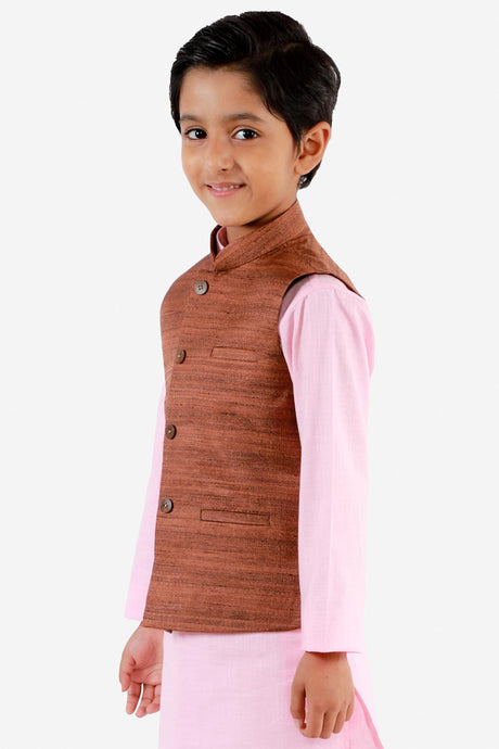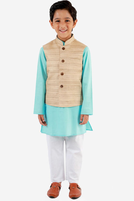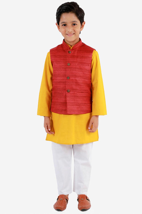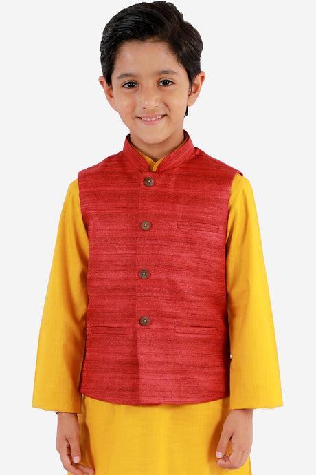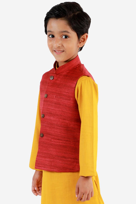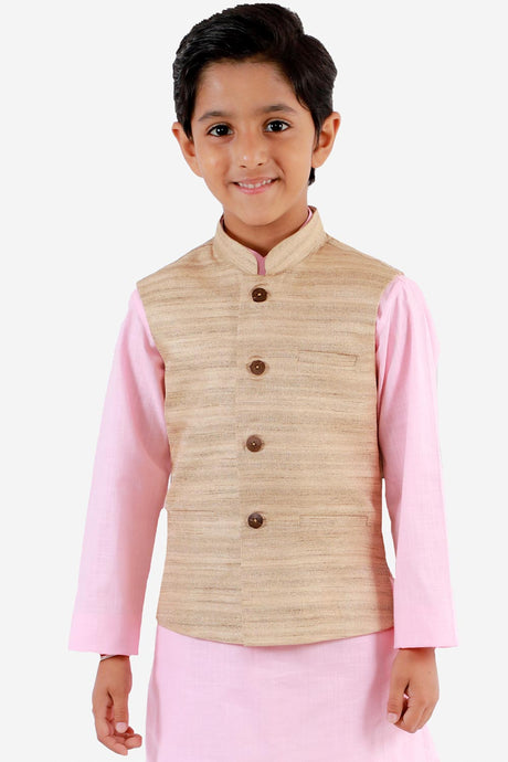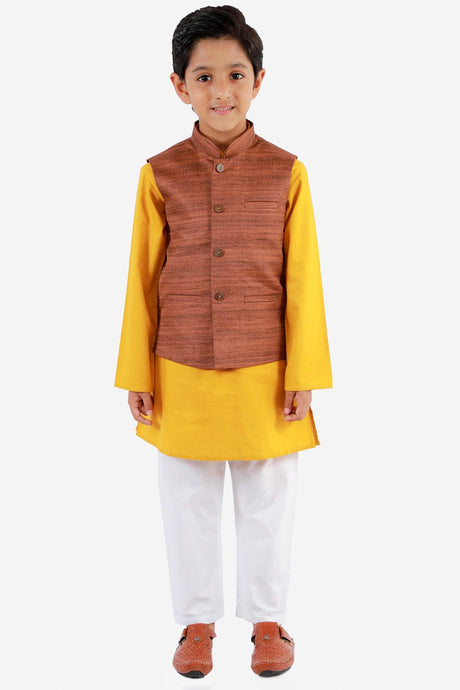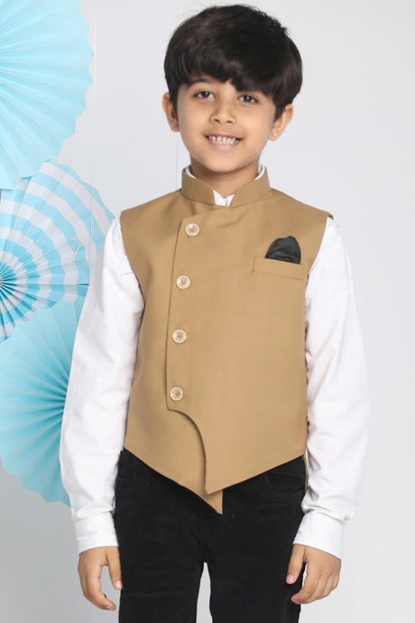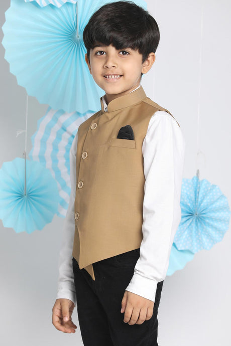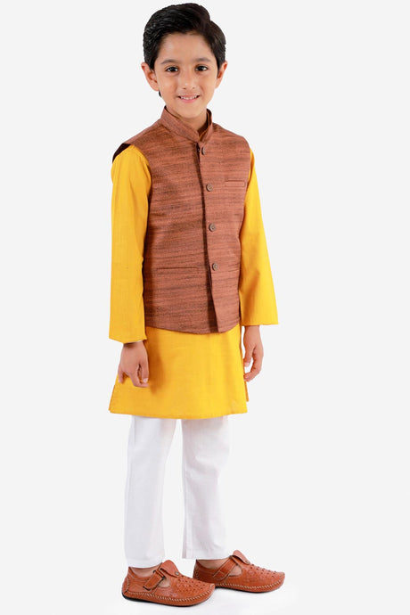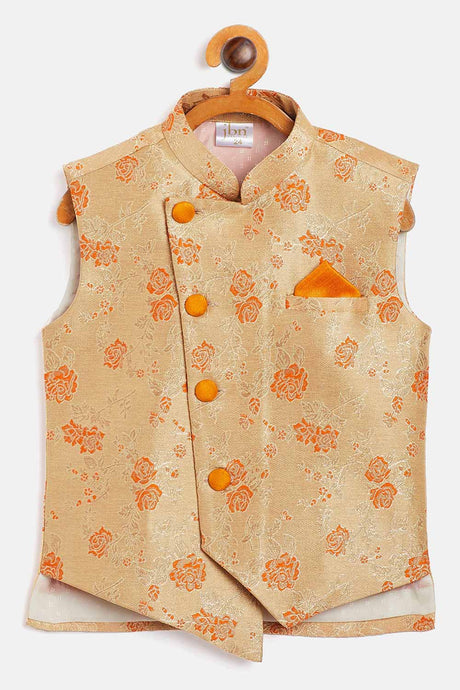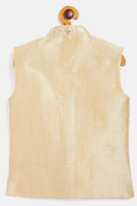 Boy's Cotton Art Silk Nehru Jacket in Gold - 6-7 Years