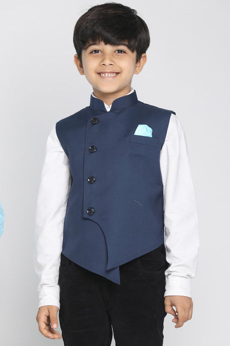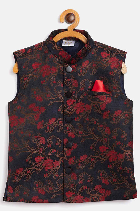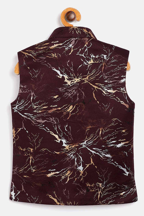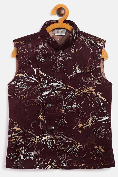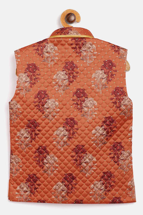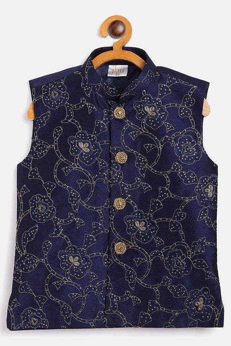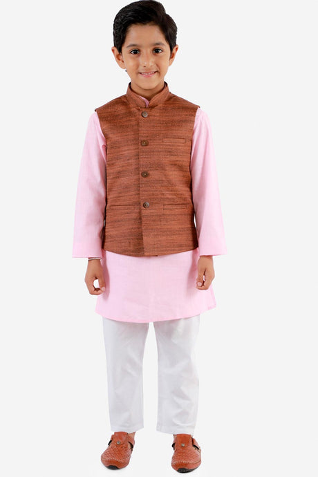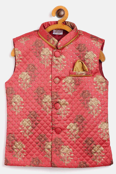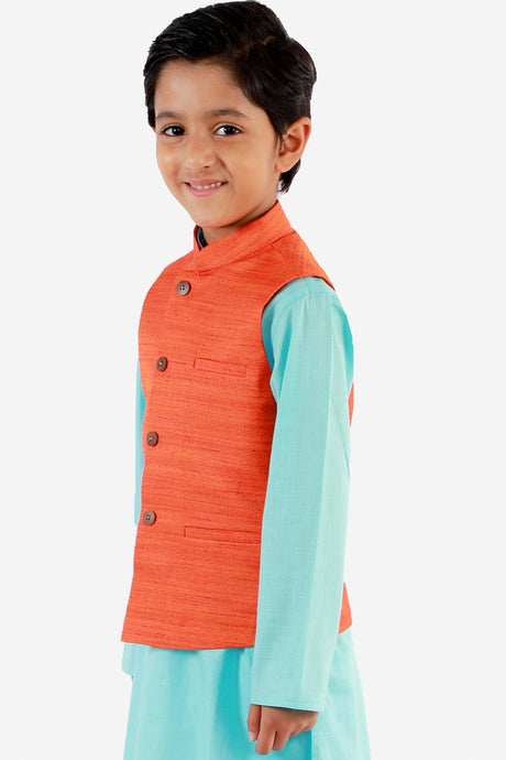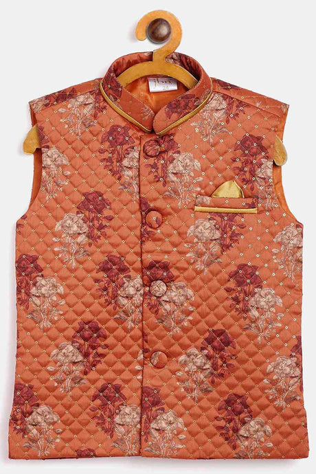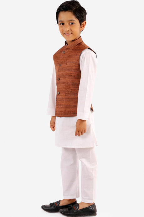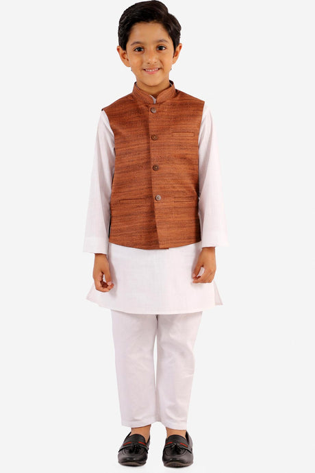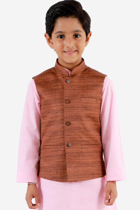 Boy's Cotton Art Silk Nehru Jacket in Gold - 6-7 Years