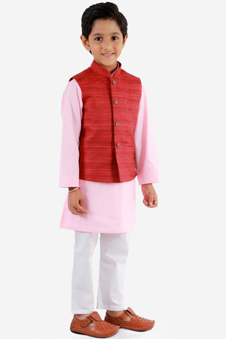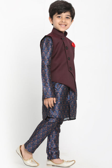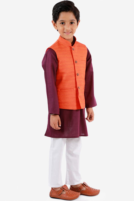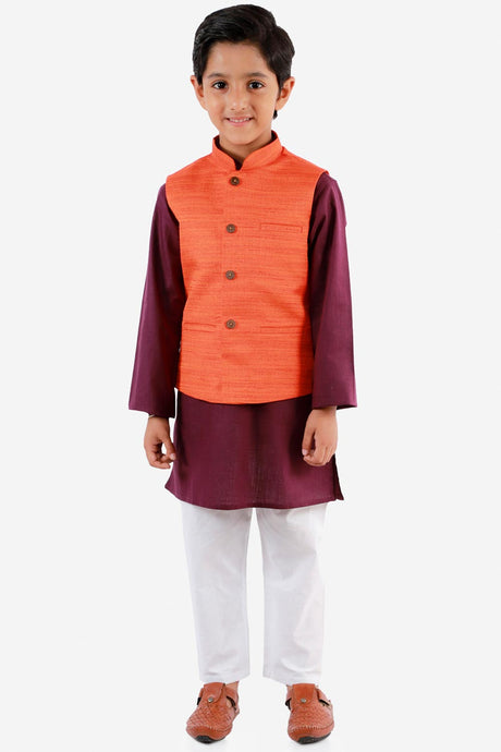 Boys Purple Poly Silk Solid Kids Kurta Churidar Set