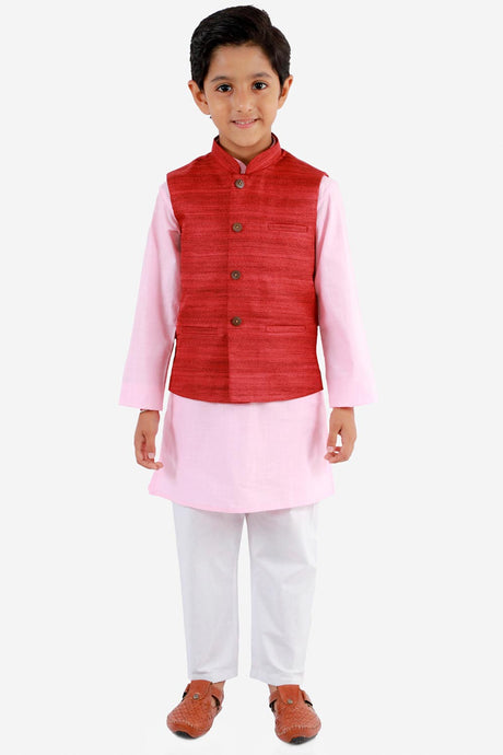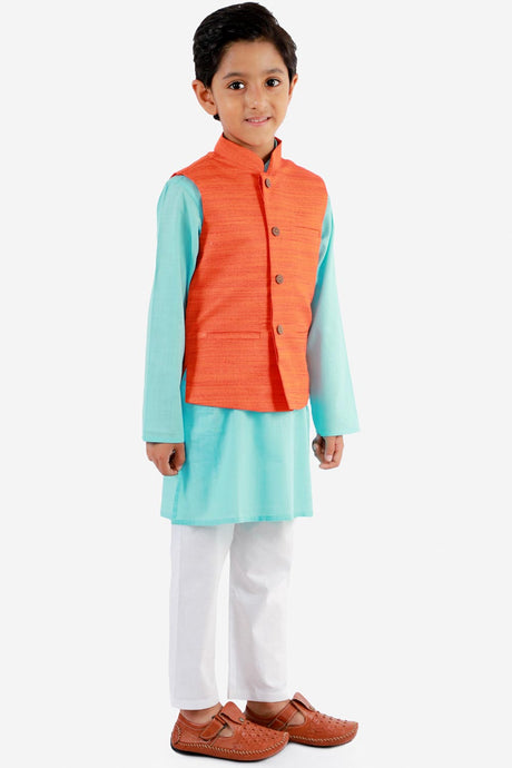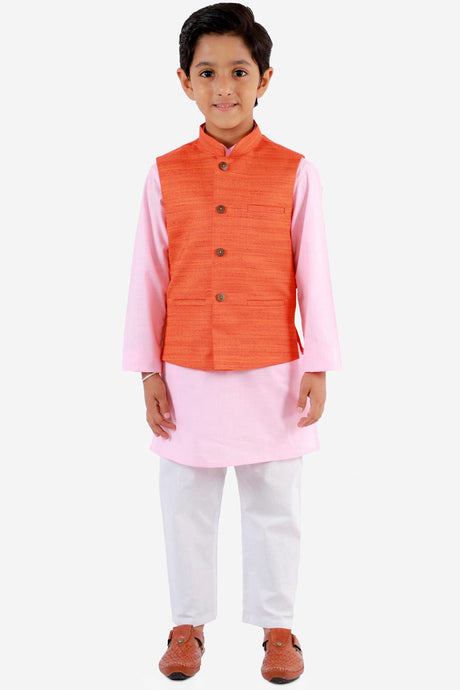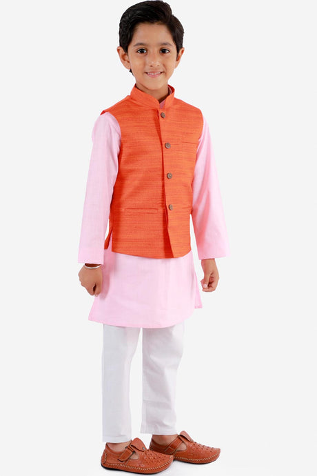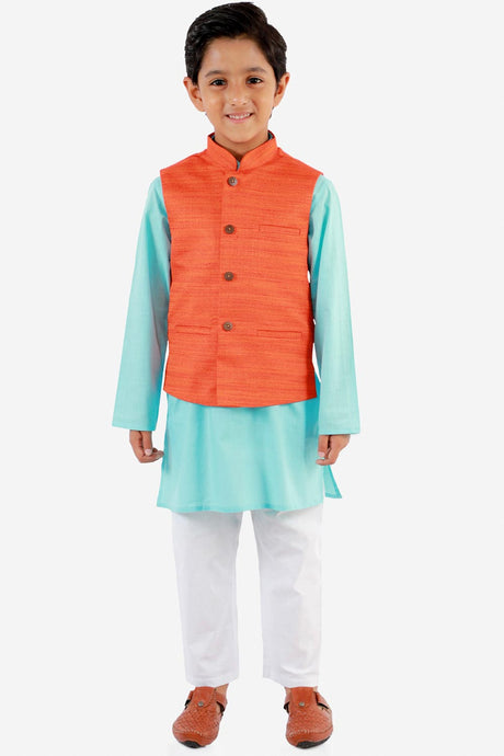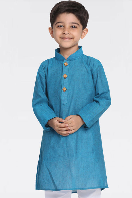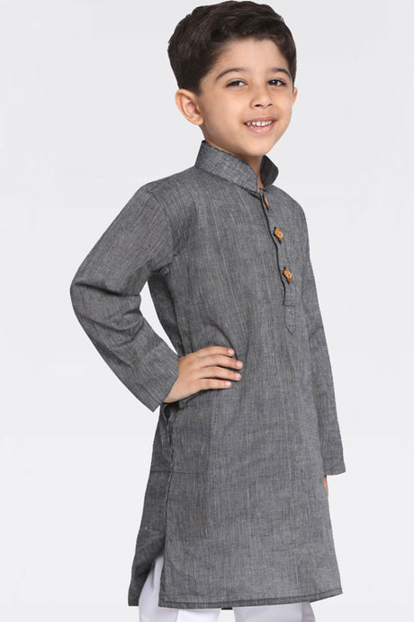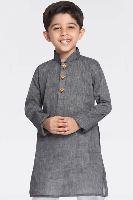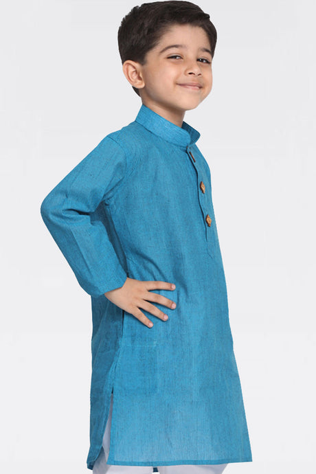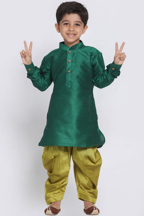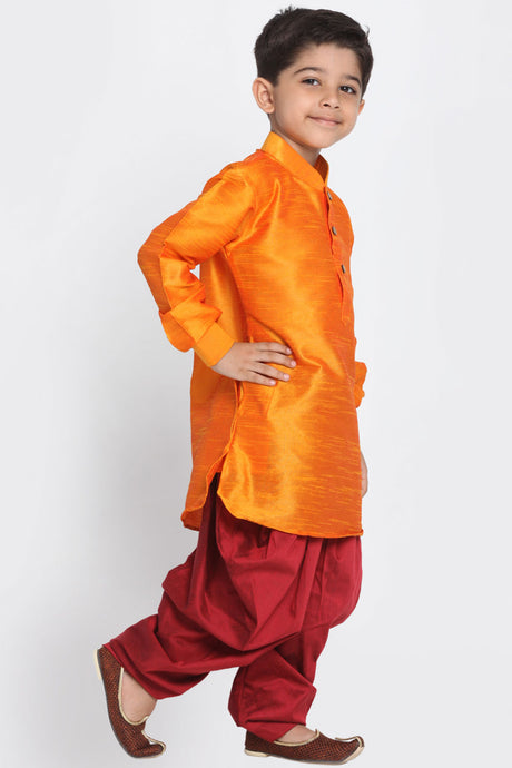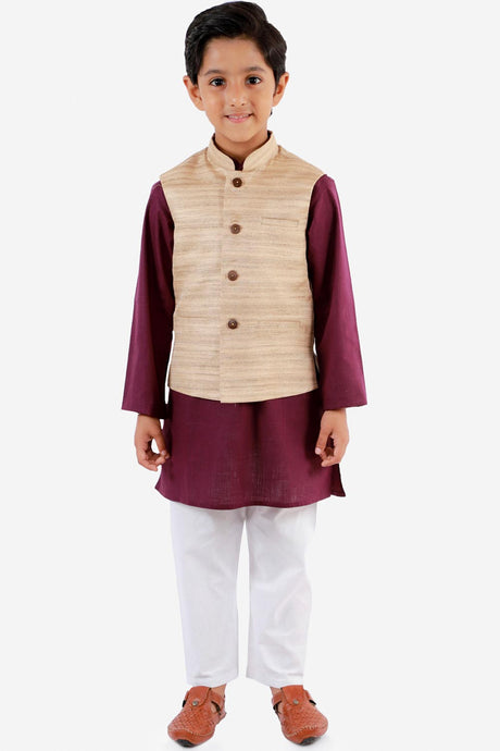 Boy's Cotton Art Silk Solid Kurta And Pajama Set In Gold