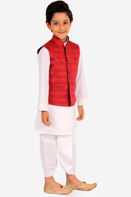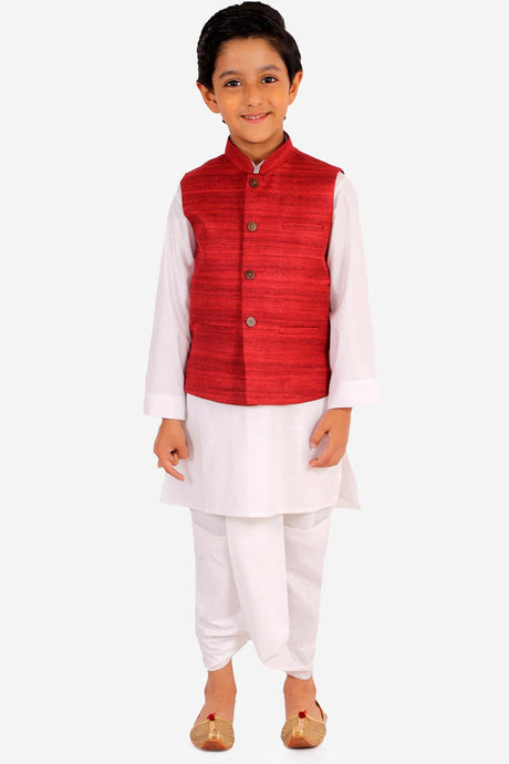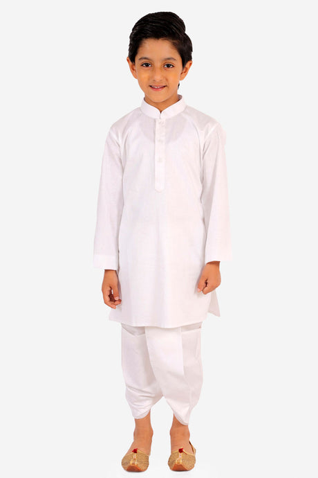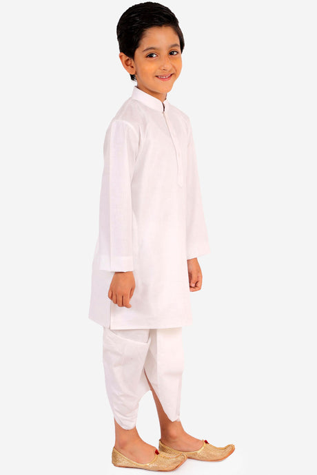 Boy's Cotton Embroidered Kurta Pajama Set In White