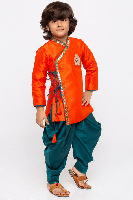 Girl's Orange Bandhani Printed Cotton Kurta Set