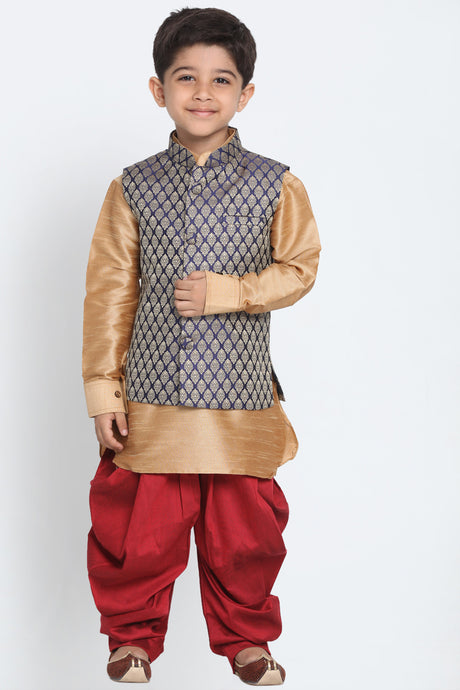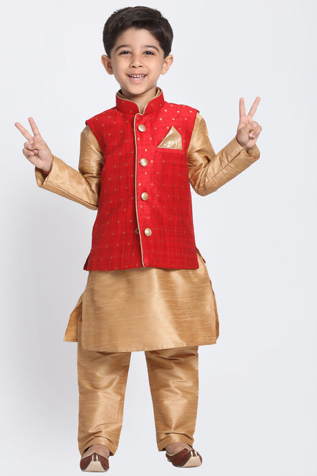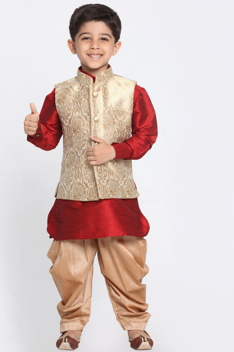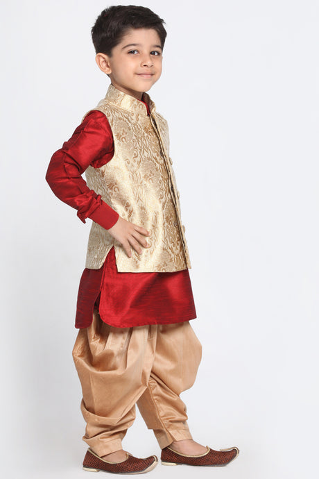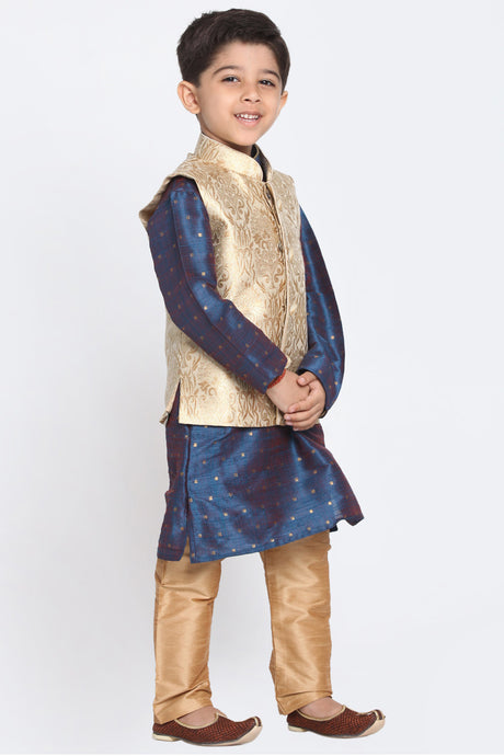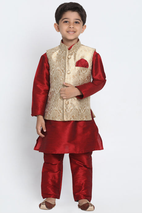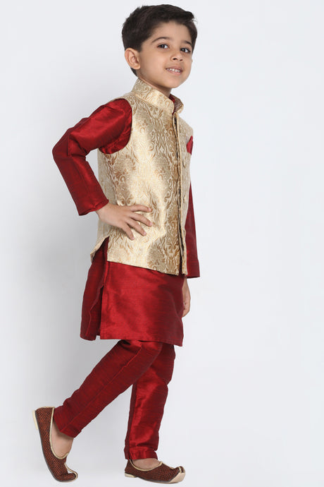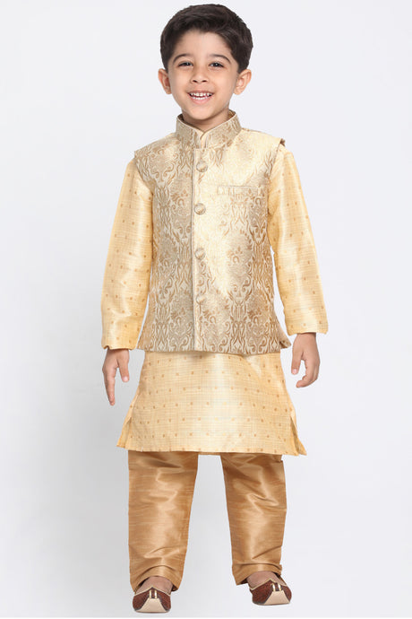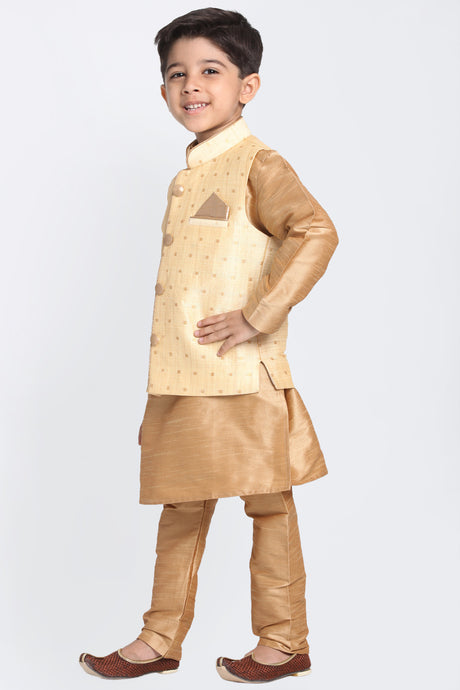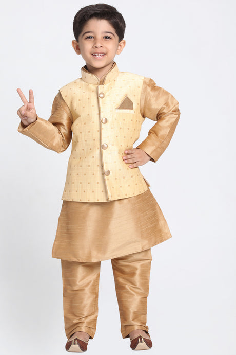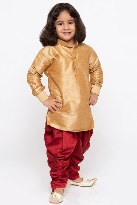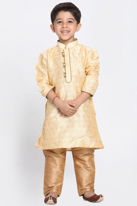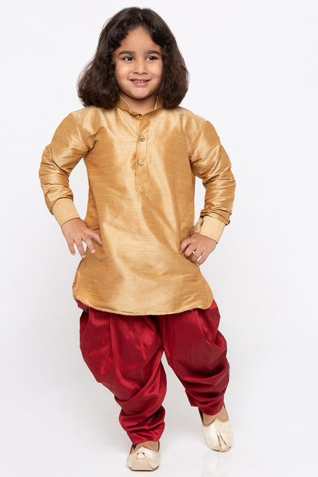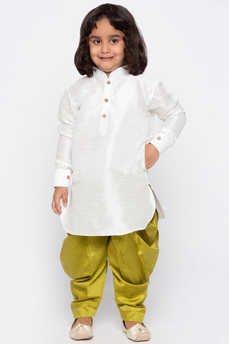 Girl's Yellow Embroidered Chanderi Kurta Set