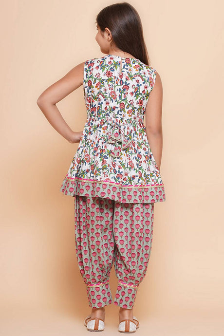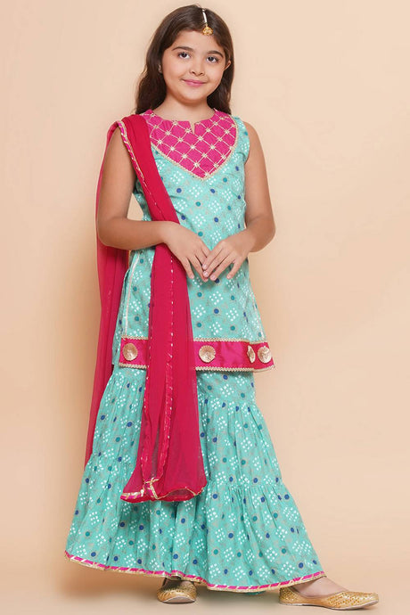 Girl's Sea Green Bandhani Printed Cotton Kurta Set