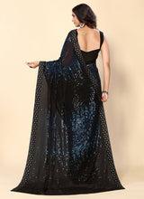 Blue & Black Georgette Sequins Work Woven Saree