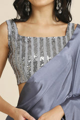 Grey Burfi Silk Saree With Lycra Sequins Unstitch Blouse