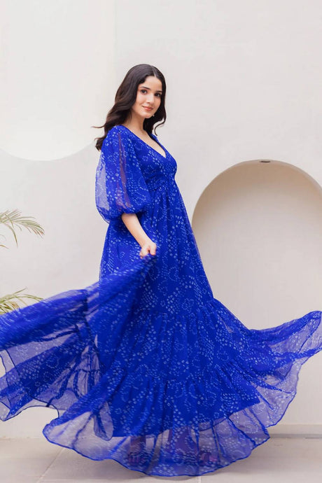 Blue Bandhani Printed Georgette Gown