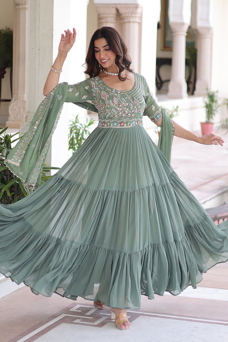 Green Sequin with Embroidered Georgette Gown