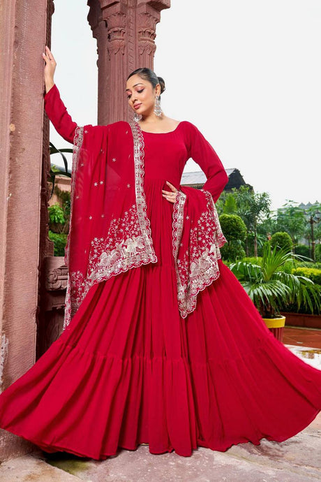 Maroon Floral Embroidered Georgette Gown
