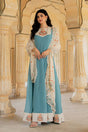 Blue Floral Embroidered Georgette Gown