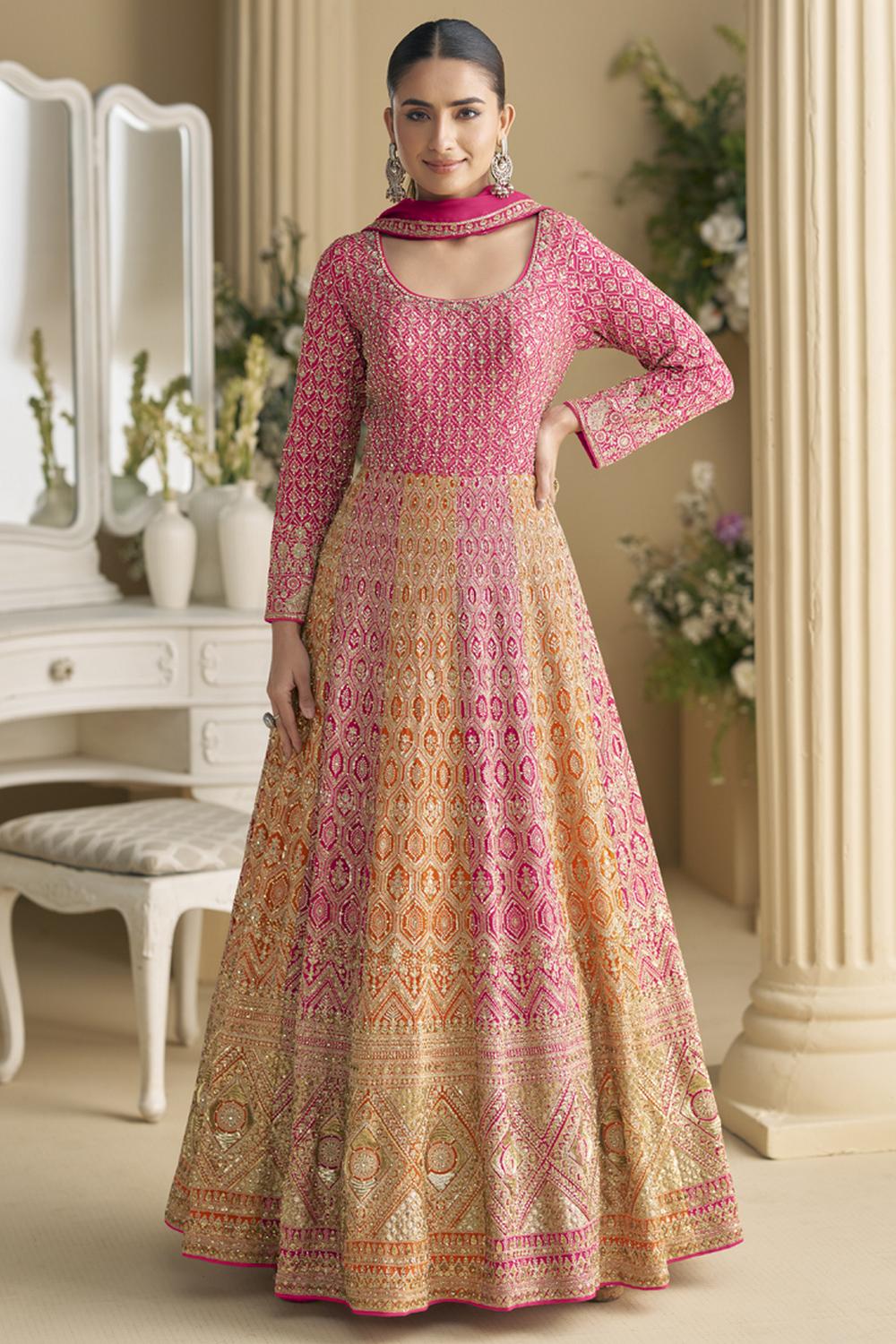 Step into effortless style with our Gown crafted for the modern woman who cherishes their Special occasion. Made from soft Georgette it keeps you comfortable all day long. The Sequin with Embroidered design lends a touch of sophistication to your outfit. Perfect for Sangeet, Mehendi, Party, Reception this Gownis a must-have for versatile styling options. Style it with minimalistic accessories and flats for a casual look or jewelry and heels for special events