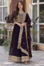 Wine Embroidered Georgette Gown