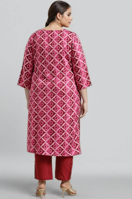 Pink Resham Embroidery Cotton Straight Cut Kurti