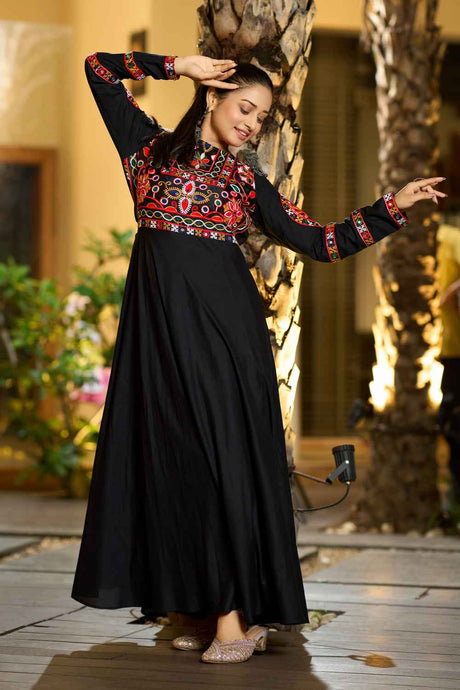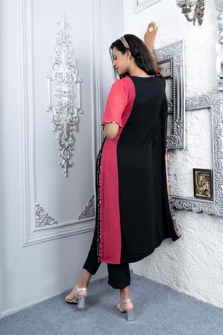 Black Resham Embroidery Cotton Straight Cut Kurti