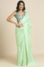 Pista Burfi Silk Saree With Lycra Sequins Unstitch Blouse