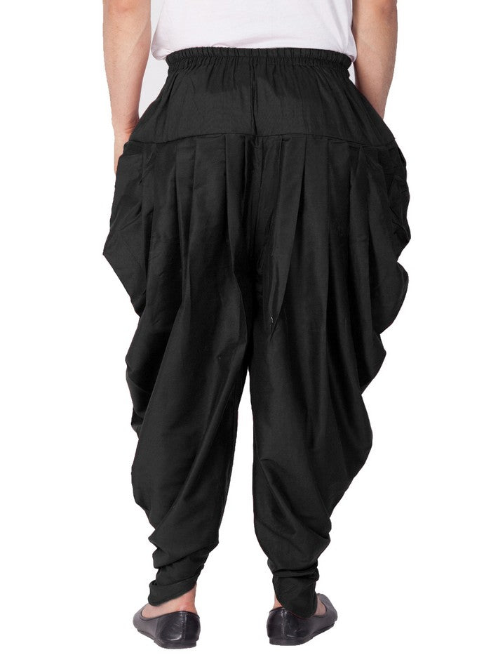 Men's Cotton Art Silk Solid Cowl Design Patiala Style Dhoti Pant In Black
