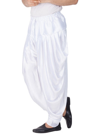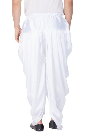 Men's Satin Solid Cowl Design Patiala Style Dhoti Pant In White