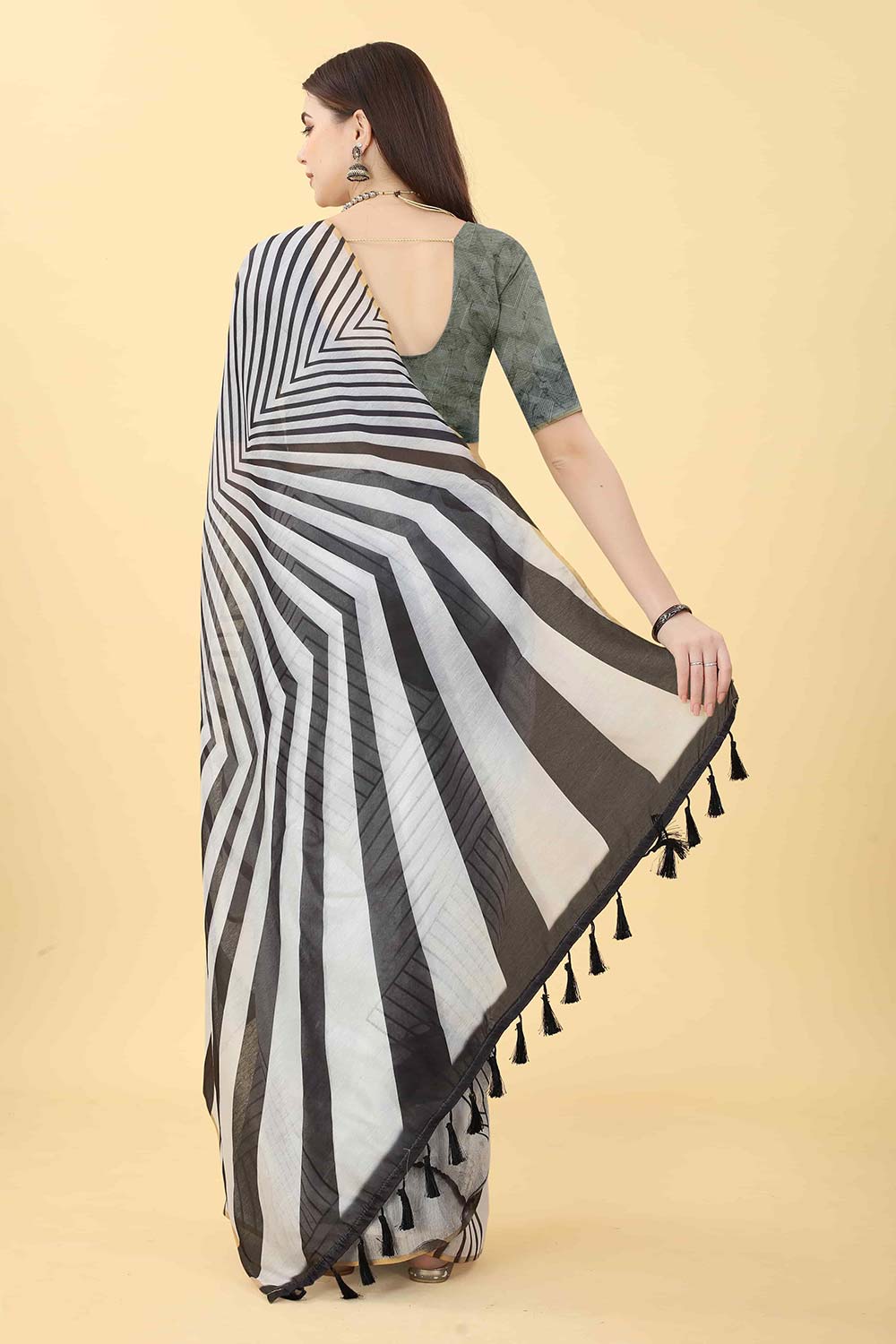 Presenting you Cotton Blend saree with beautiful tassels, available in multiple vibrant colors. Crafted with a lightweight fabric, this saree ensures comfort and ease of movement, making it perfect for parties and special occasions. Embrace its graceful drape and exquisite tassels, adding a touch of charm and glamour to your ensemble.