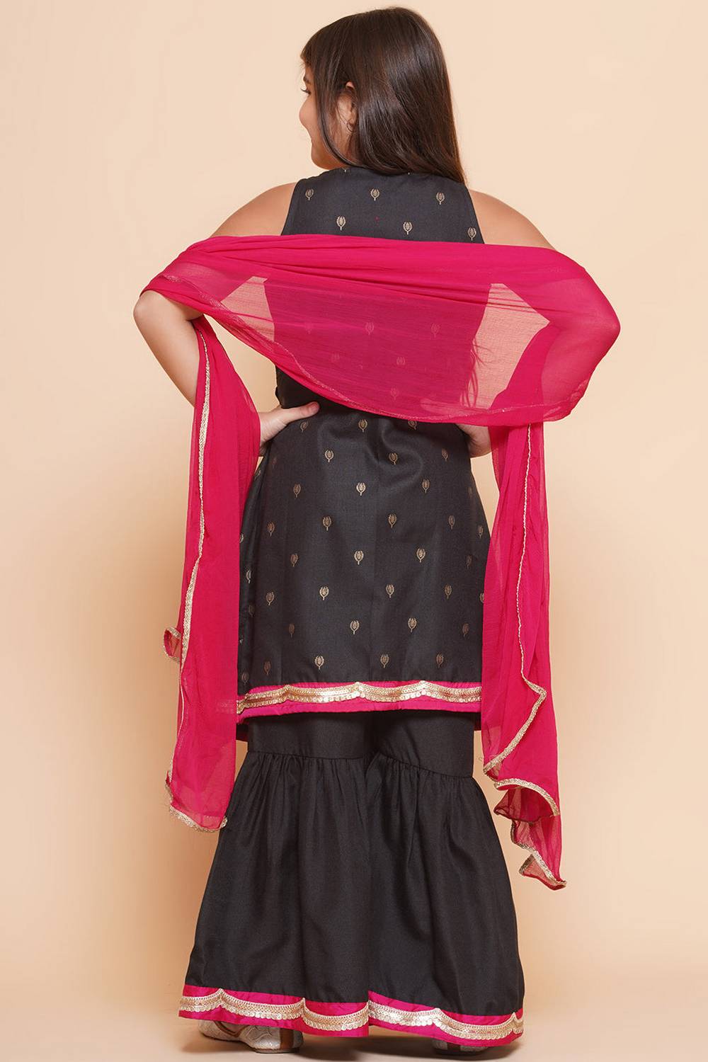 Girl's Black Ethnic Motifs Printed Cotton Kurta Set