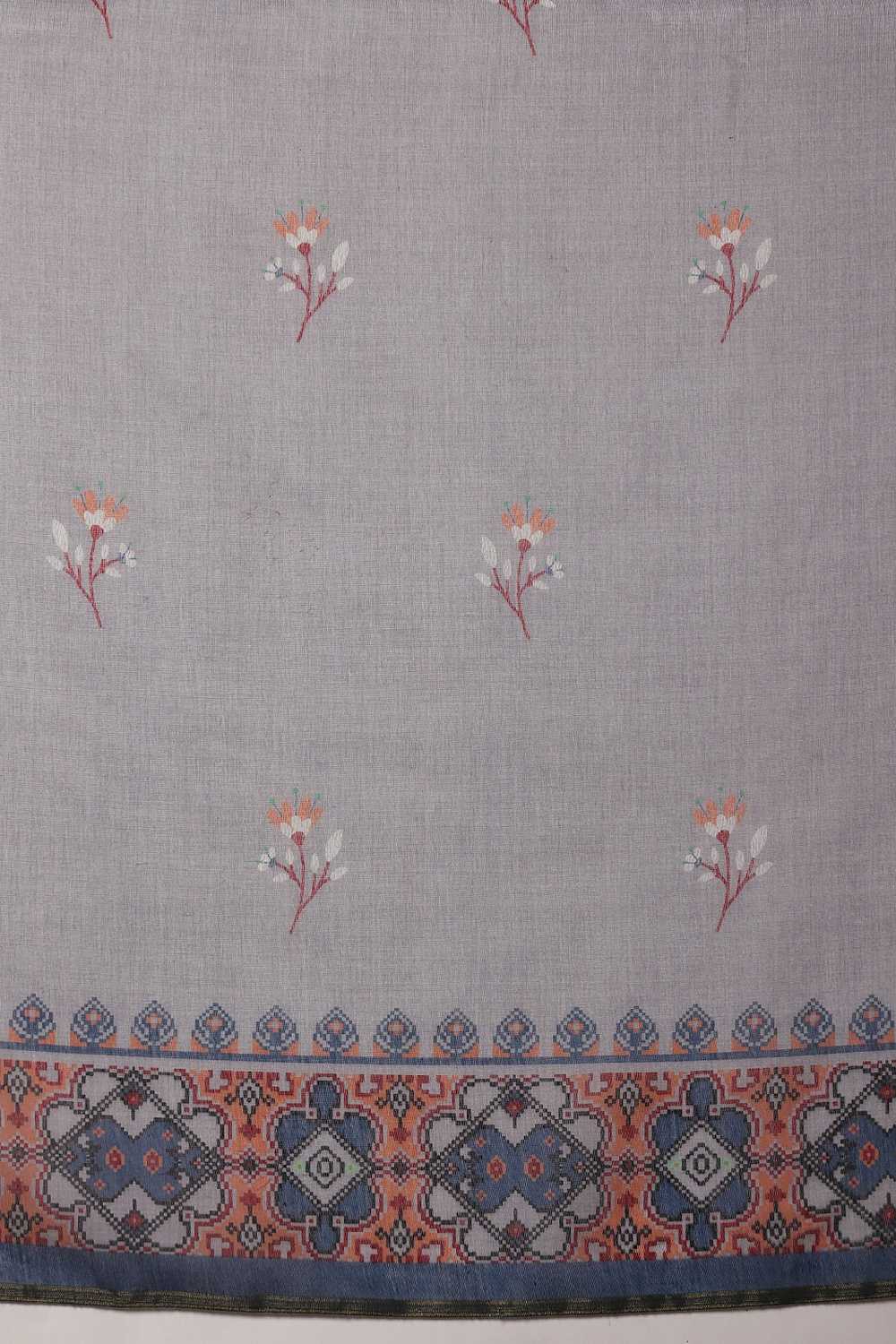 Grey Floral Printed Cotton Blend Ready to Wear Saree
