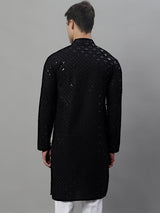 Men's Black Chikankari Embroidered And Sequin Kurta