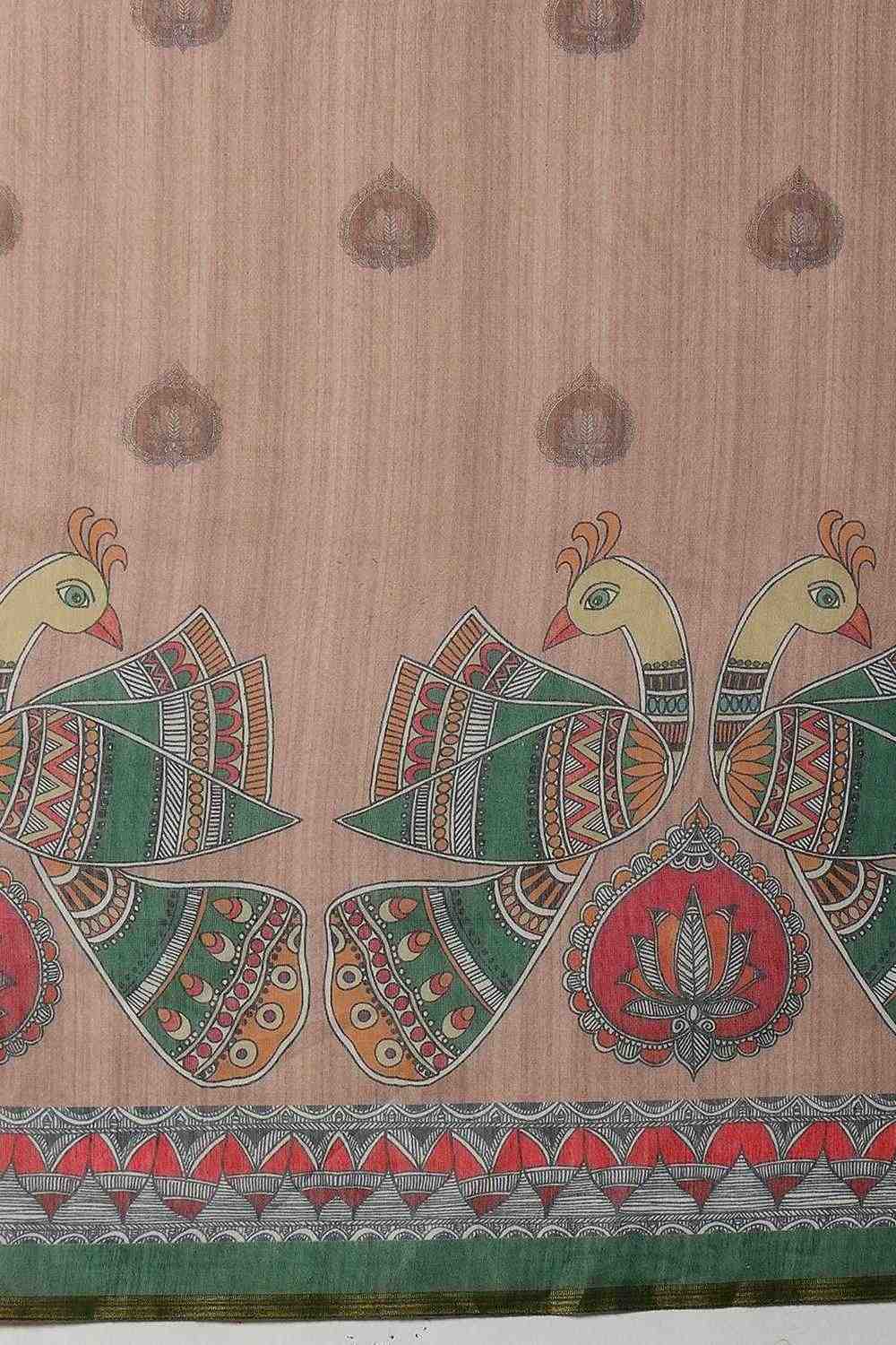 Peach Madhubani Printed Cotton Blend Ready to Wear Saree