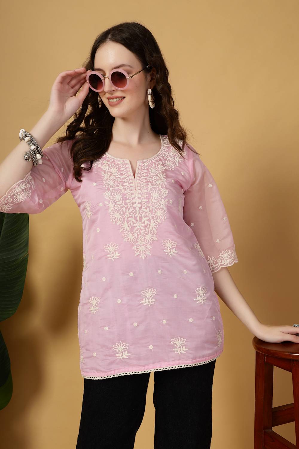 Stay on-trend with our Tops & Tunics a perfect choice for the modern woman. Crafted with lightweight Organza this piece is designed to keep you comfortable and chic all day long. The Embroidered add a contemporary edge, making it a versatile wardrobe staple for casual outings, this top/tunic seamlessly elevates your style. Pair it with skinny jeans, a tote bag, and loafers for a casual vibe or statement earrings and wedges for a more polished look. Add an effortless flair to your wardrobe with Tops & Tunics