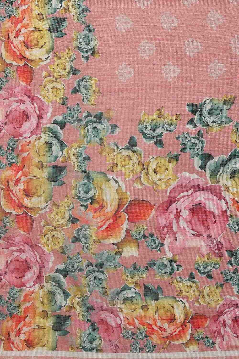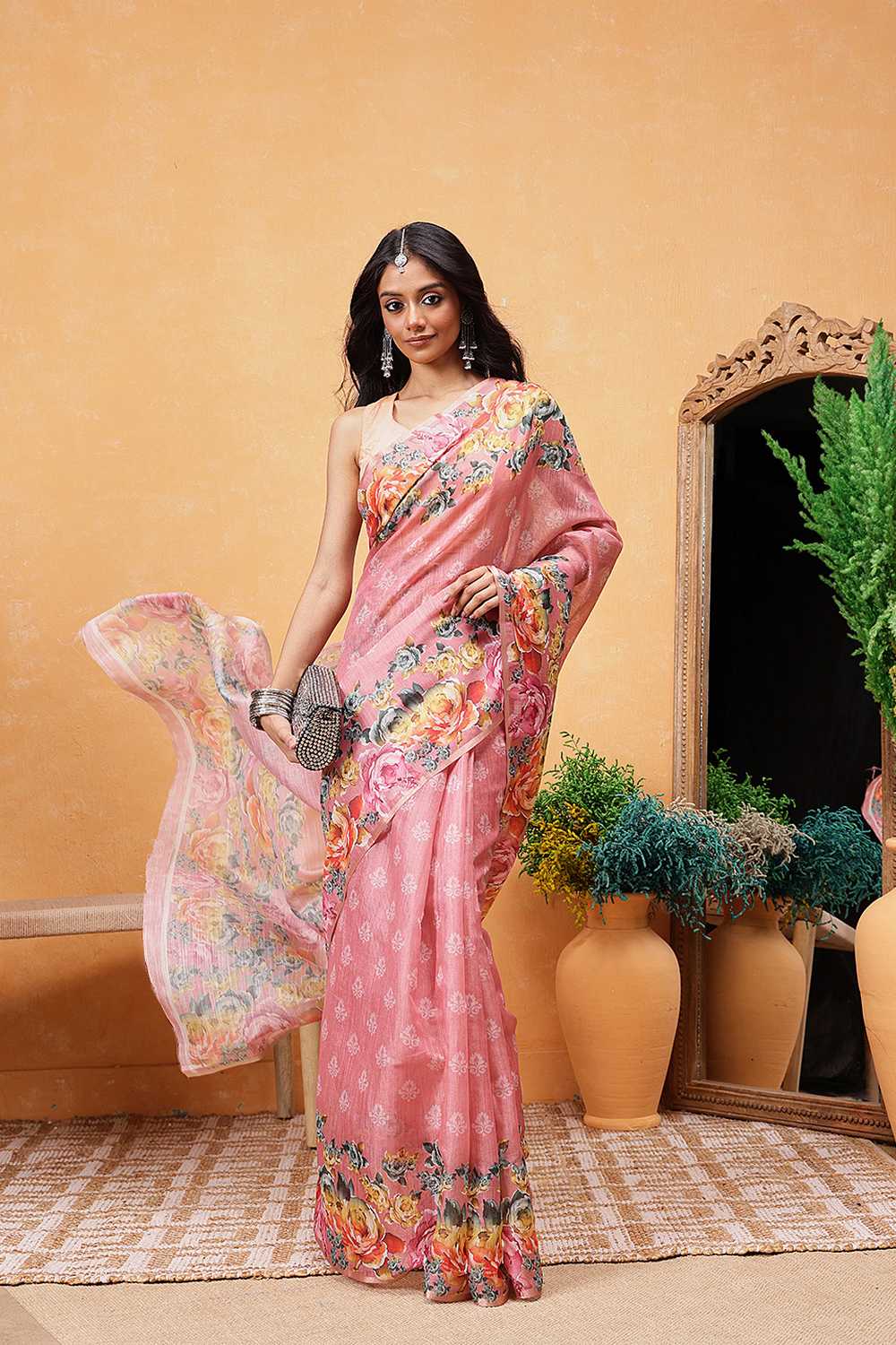 Pink Floral Printed Cotton Blend Ready to Wear Saree
