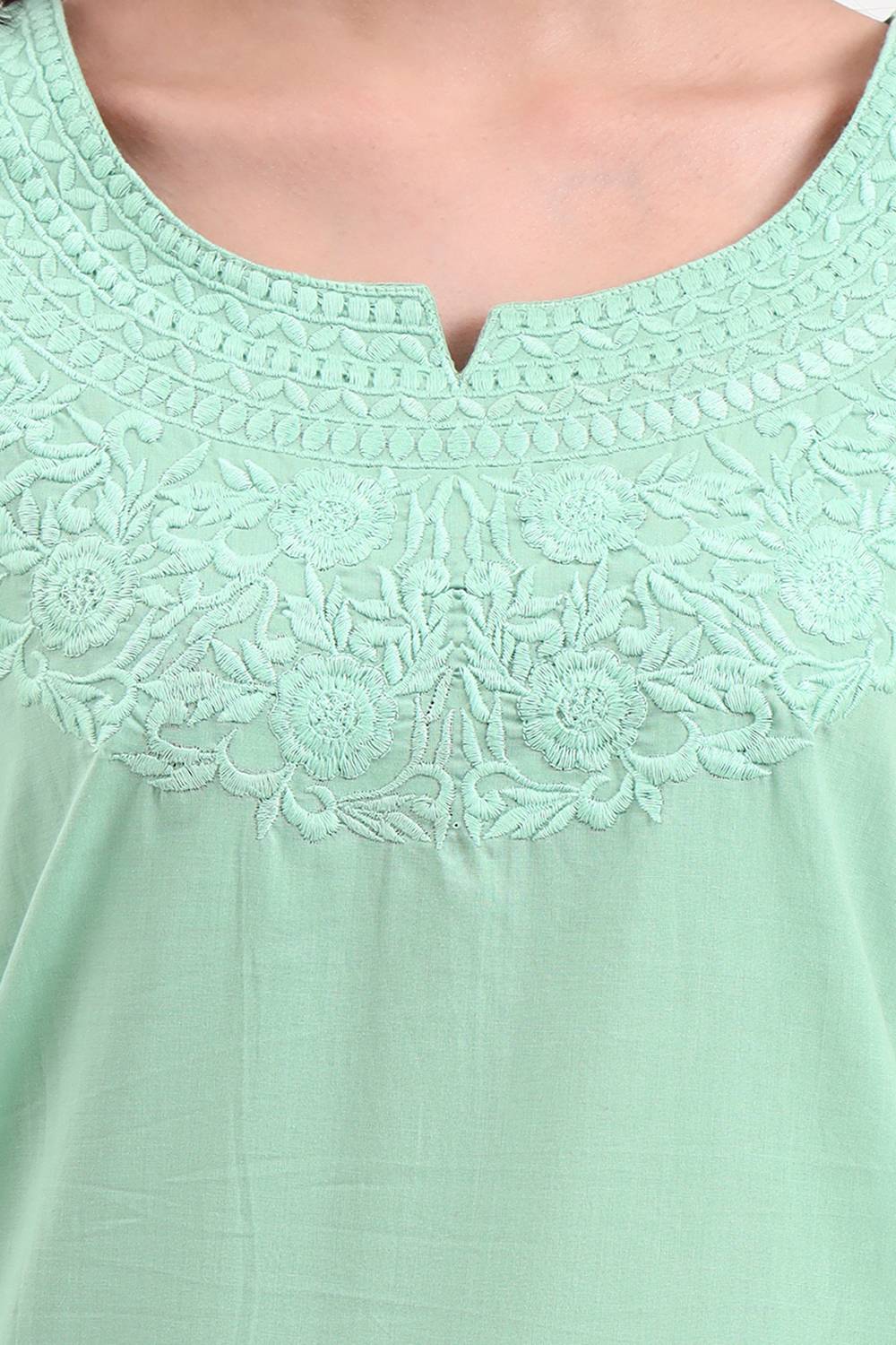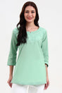 Sea Green Embroidered Cotton Tops & Tunics