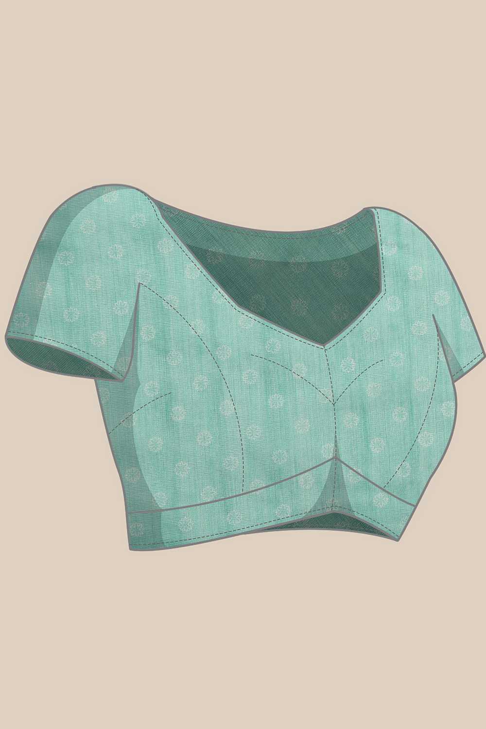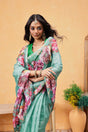 Turquoise Floral Printed Cotton Blend Ready to Wear Saree