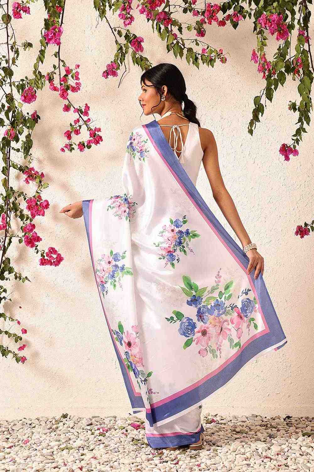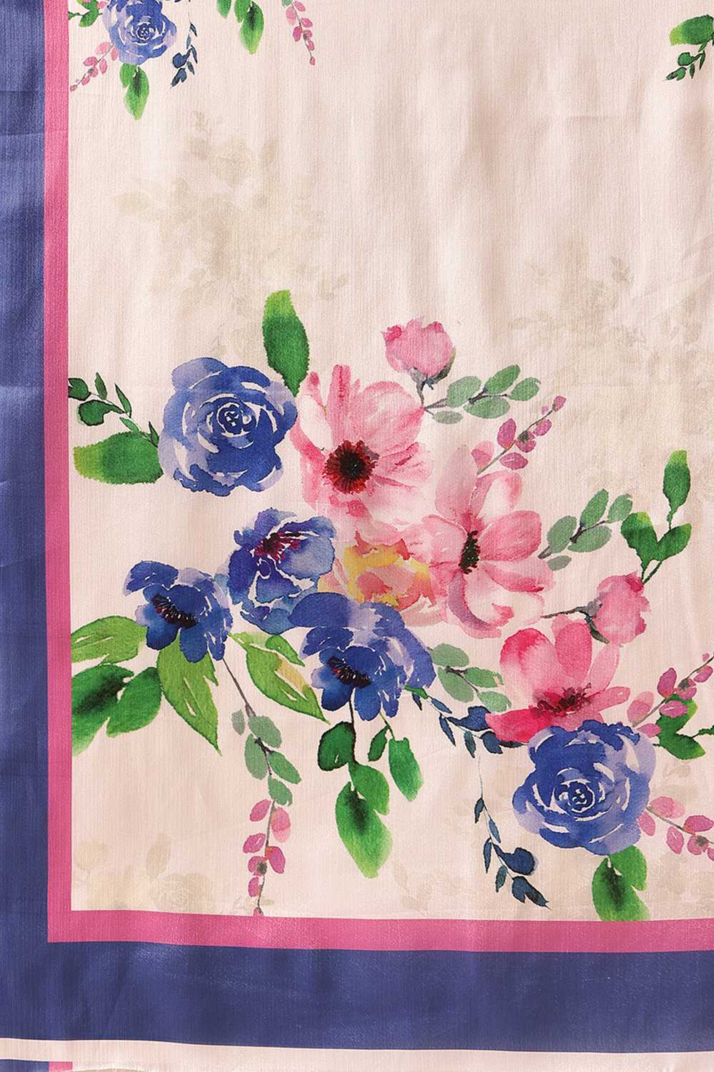 White Floral Printed Chiffon Ready to Wear Saree