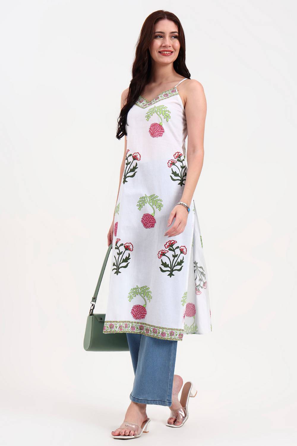 Step into effortless style with our Straight Kurtis crafted for the modern woman who cherishes tradition. Made from soft Cotton it keeps you comfortable all day long. The Floral Printed design lends a touch of sophistication to your outfit. Perfect for Casual this Straight Kurtis is a must-have for versatile styling options. Style it with minimalistic accessories and flats for a casual look