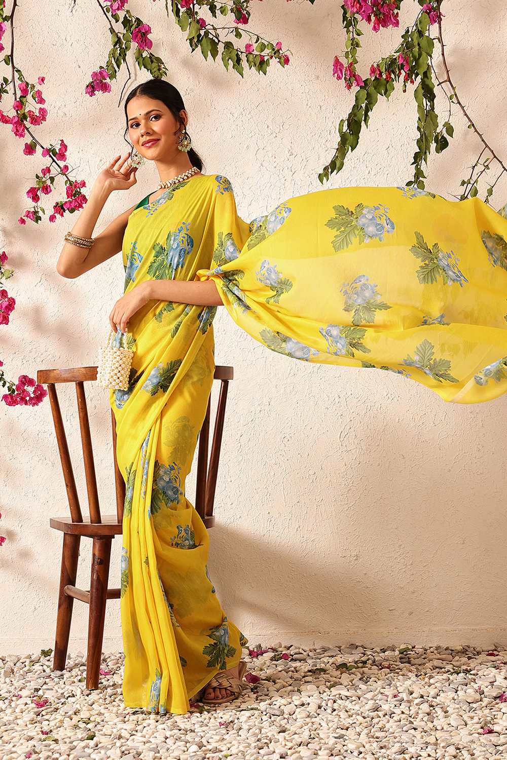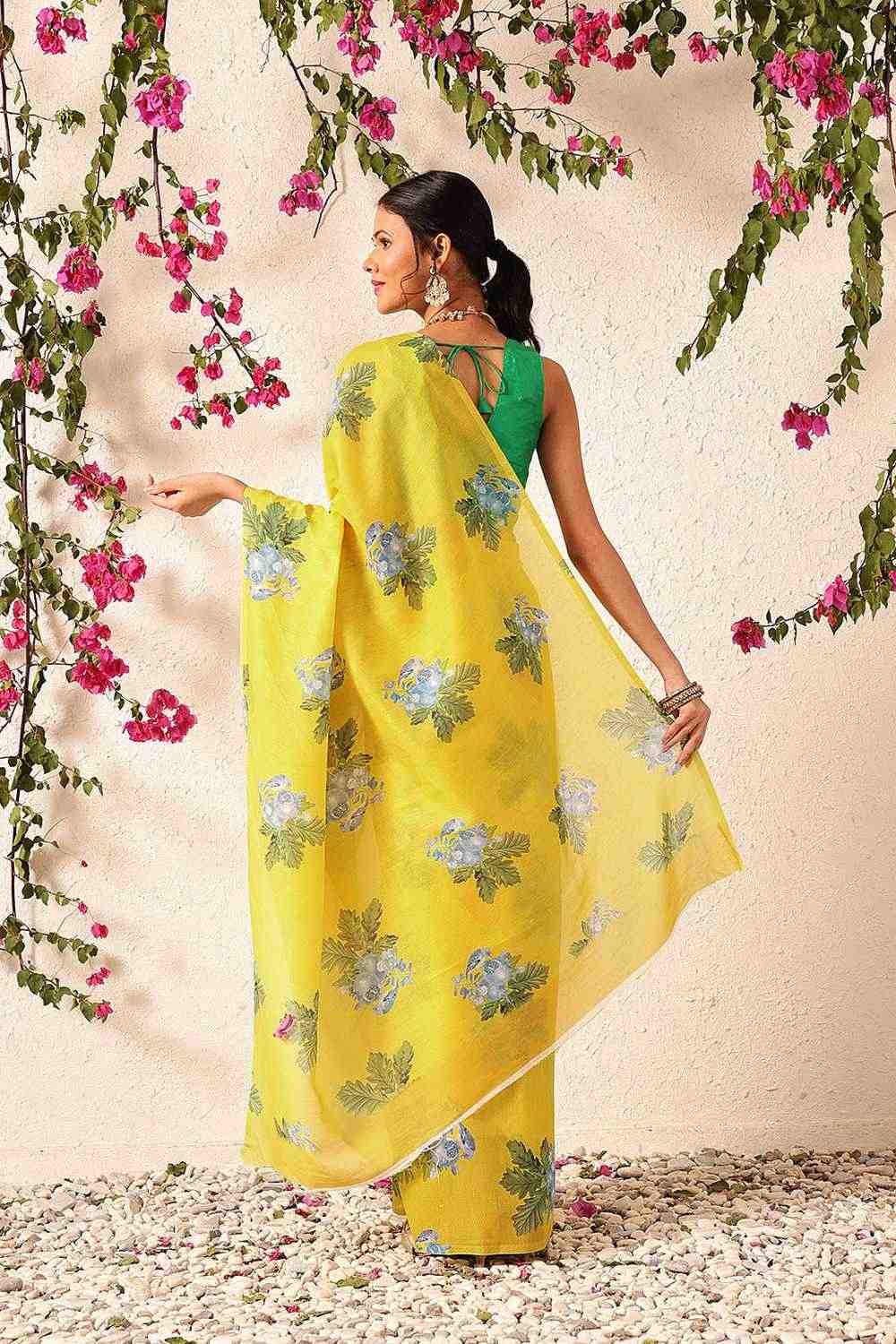Yellow Abstract Printed Mul Cotton Ready to Wear Saree