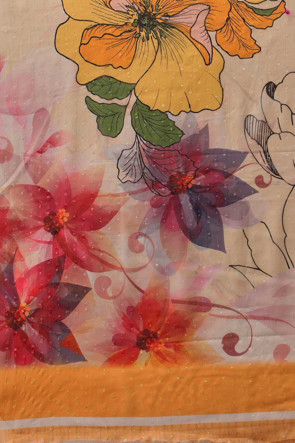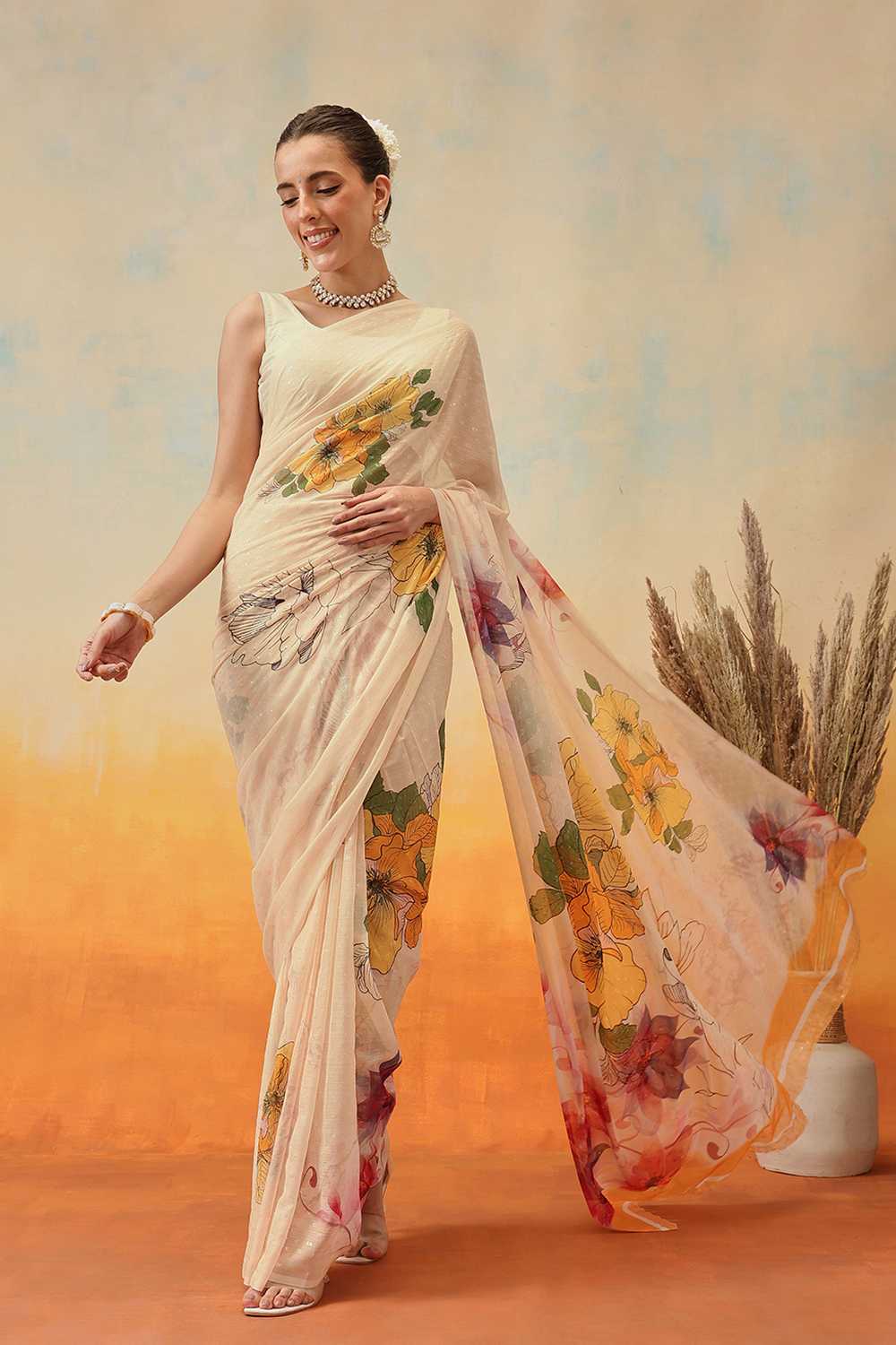 Yellow Floral Printed Chiffon Ready to Wear Saree