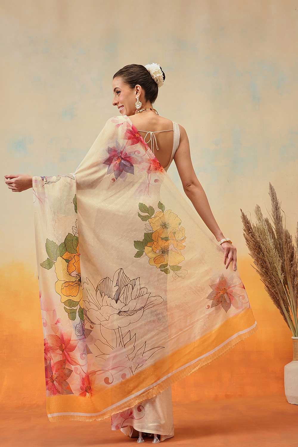 Elevate your wardrobe with our exquisite Ready to Wear Saree a masterpiece crafted to add timeless elegance to your style. Made from Chiffon this saree offers a perfect mix of comfort and sophistication. Adorned with Floral Printed it showcases intricate craftsmanship that speaks volumes of tradition and artistry. Perfect for Festive this saree is a versatile addition to your collection, ensuring you stand out effortlessly. Pair it with elegant Jewelry, for a glamorous look. Add Clutches or,potli Bags and complete the ensemble with Wedges & Heels making it a perfect choice for any event. Make a statement and embrace the elegance of Ready to Wear Saree today