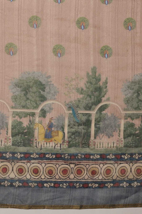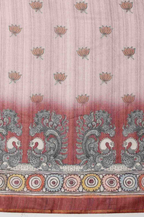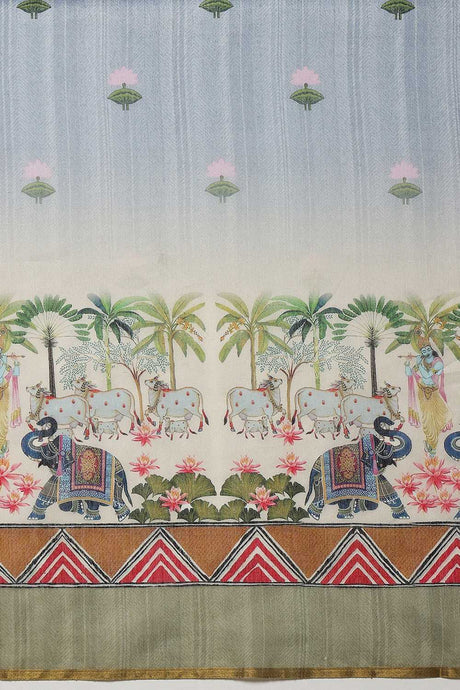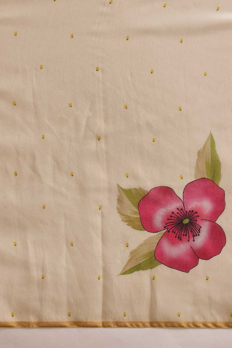 Beige Floral Printed Cotton Blend Ready to Wear Saree