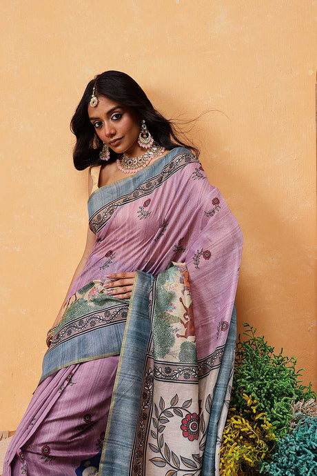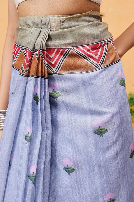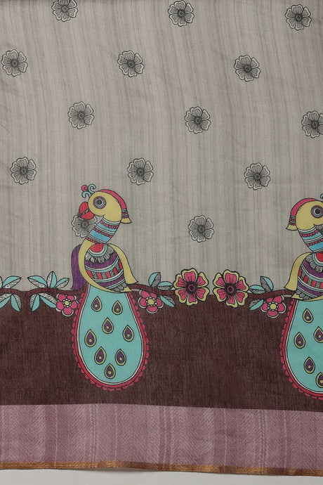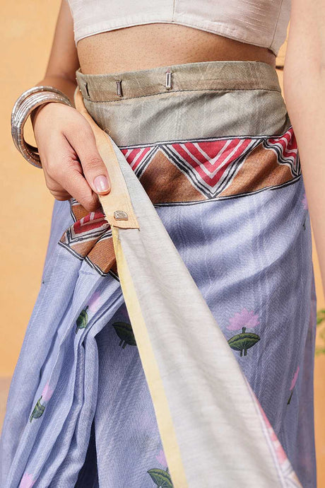 Grey Madhubani Printed Cotton Blend Ready to Wear Saree
