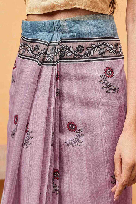 Pink Madhubani Printed Cotton Blend Ready to Wear Saree