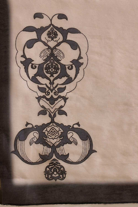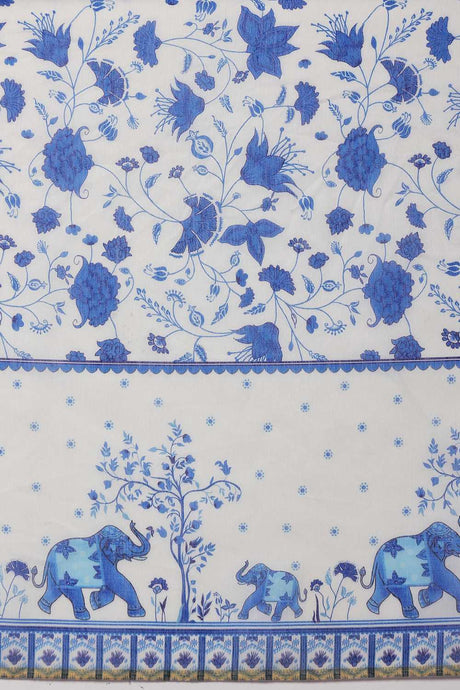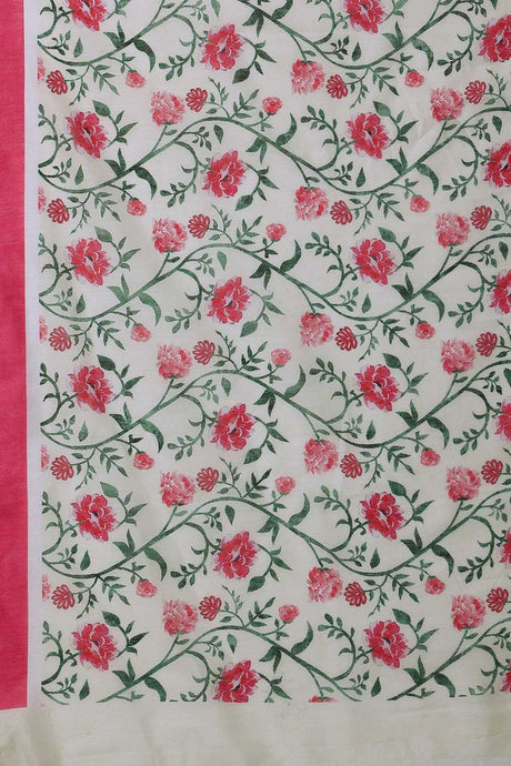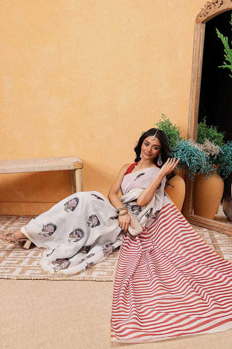 White Floral Printed Cotton Blend Ready to Wear Saree