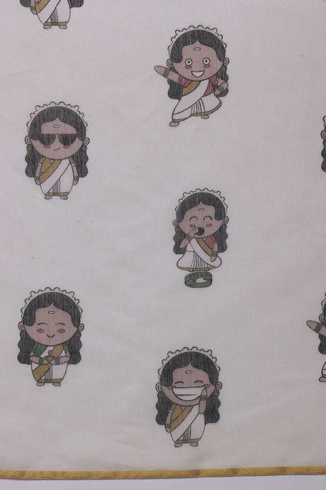 White Abstract Printed Cotton Blend Ready to Wear Saree