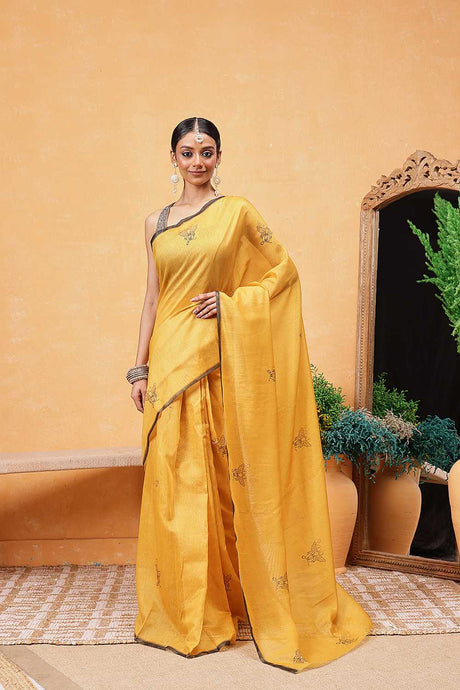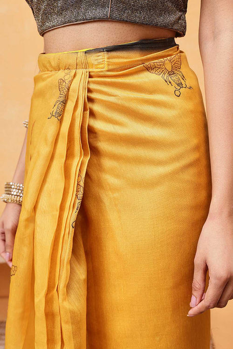 Yellow Animal Printed Cotton Blend Ready to Wear Saree