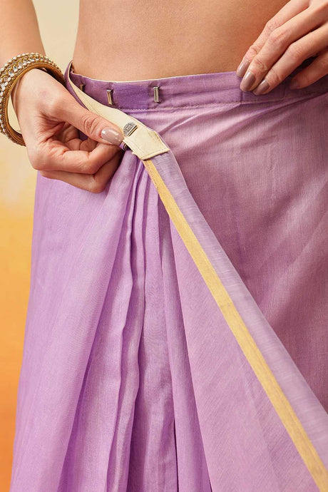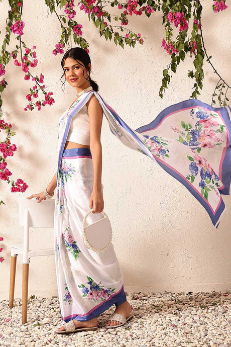 Violet Floral Printed Cotton Blend Ready to Wear Saree