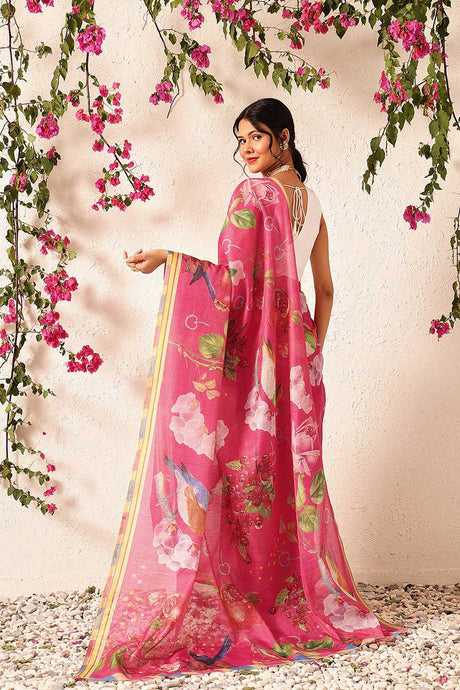 Pink Abstract Printed Cotton Blend Ready to Wear Saree