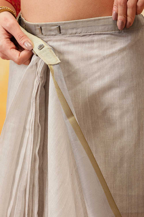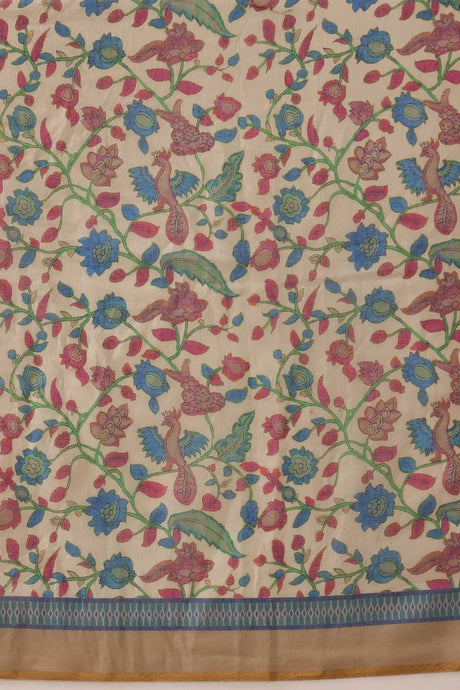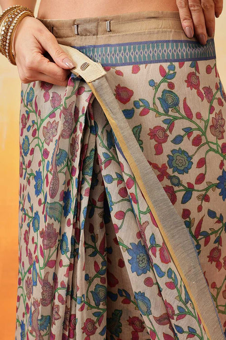 Beige Floral Printed Cotton Blend Ready to Wear Saree