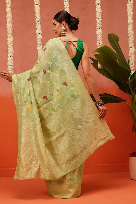 Green Woven Design Cotton Saree