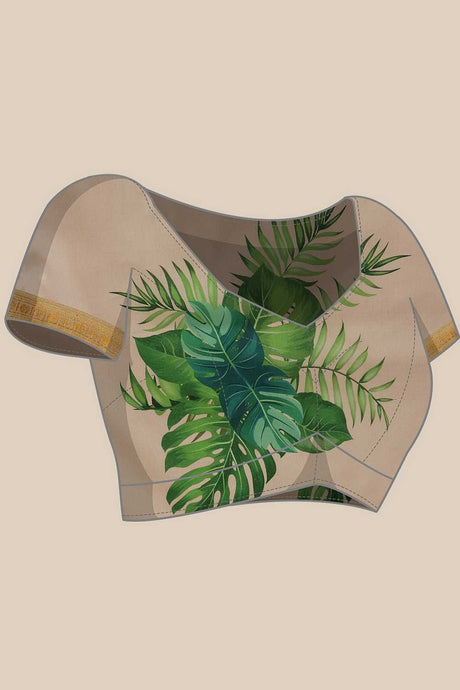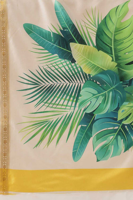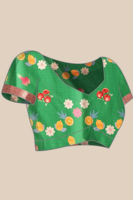 Green Floral Printed Silk Saree