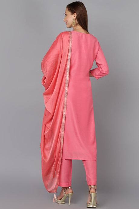 Pink Silk Blend Bandhani Printed Straight Suit Set