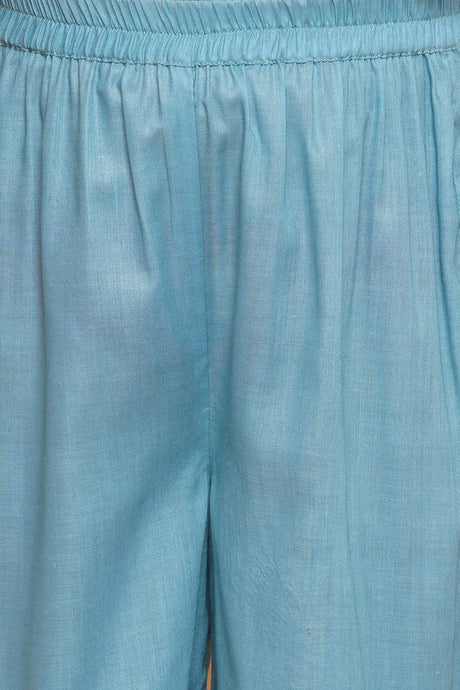 Turquoise Floral Printed Cotton Straight Cut Suit Set
