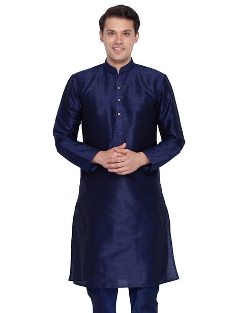 Men's Cotton Art Silk Solid Kurta In Navy Blue